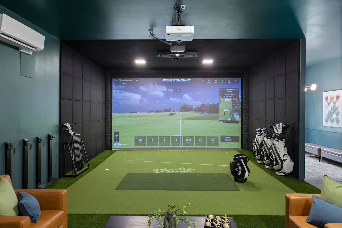 Our simulator lounge pairs the Foresight Falcon launch monitor with PuttView’s augmented reality putting system, creating the most complete indoor golf experience. Finish every hole on a sloped green that mirrors the on-screen shot. With tour-level tracking, real-time putting feedback, and no auto-putts, this setup keeps the competition going long after your round is over. Enjoy professional darts, a card table, and luxurious seating area while your buddies swing away.